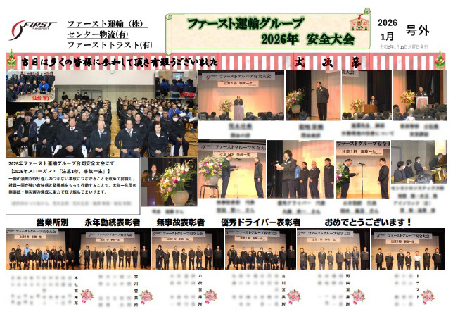 そこで今回、“交通事故防止の意識を高める”ことと、健康面も含めて“長く安心して働ける環境”を整えることを目的に、安全大会を開催しました。