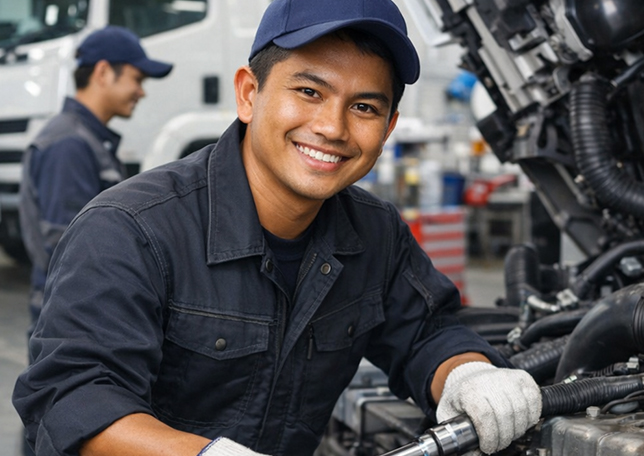 運送業界では、整備部門での外国人採用はまだ多くはありませんが、当社にとっては人財の多様化を進め、技術の継承につなげていくための重要な取り組みです。文化や言語の違いを越えて安心して働けるよう、現場のサポート体制と研修内容を充実させ、長く活躍できる環境づくりを進めてまいります。